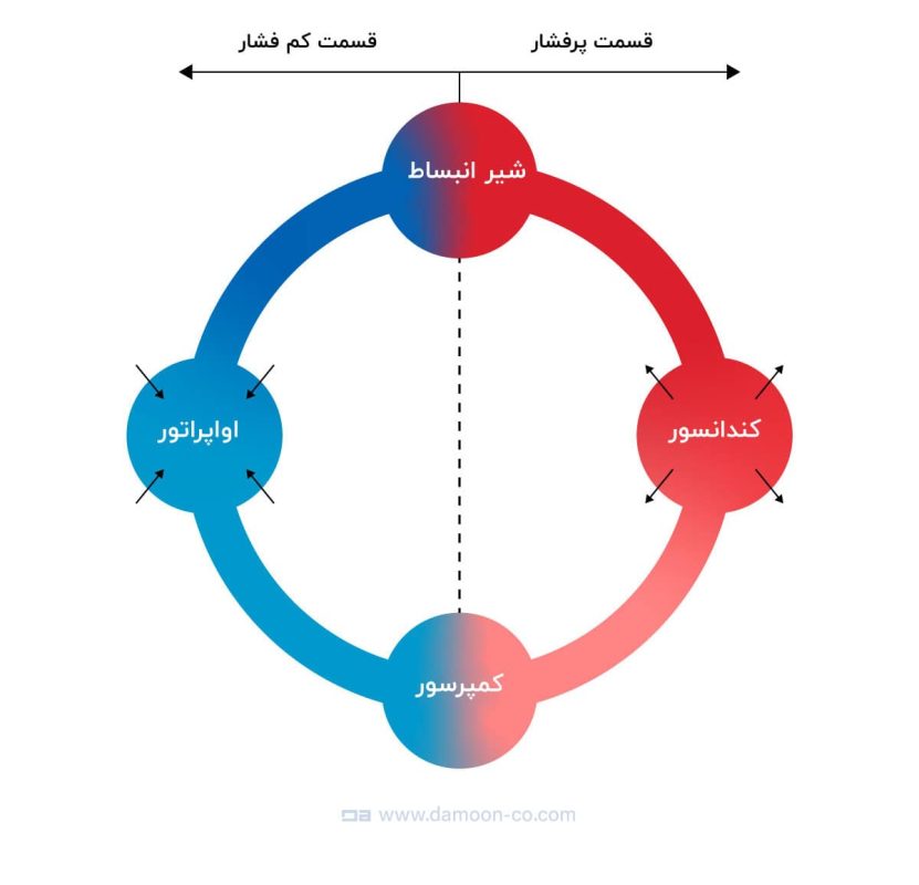 نمایش قسمت های کم فشار و پرفشار چرخه تبرید