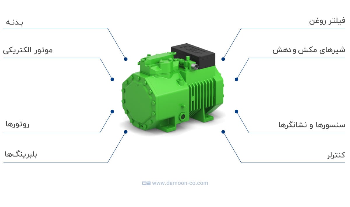 اجزای اصلی کمپرسور بیتزر: