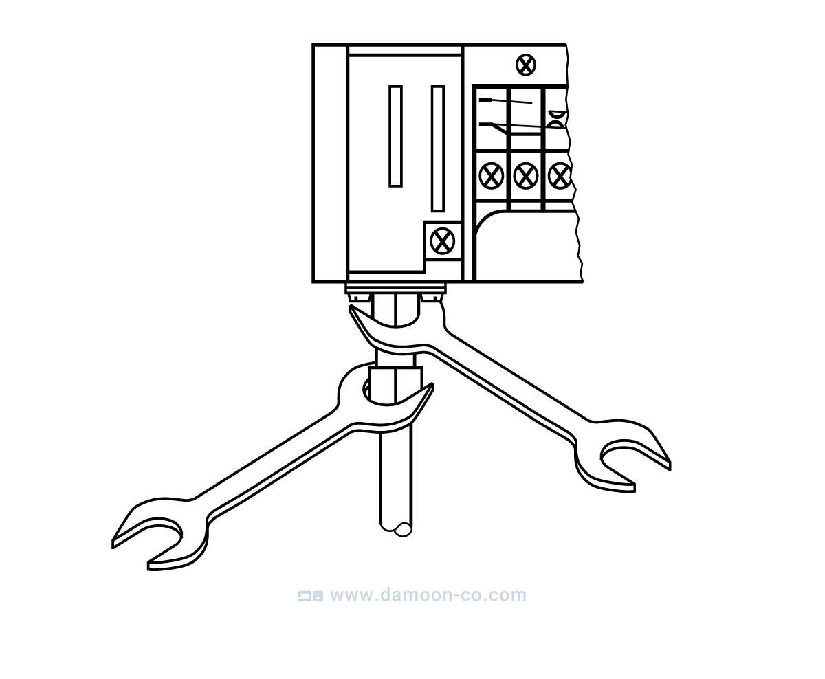 - گام 4: با یک اچار دیگر، مهره کپی یا لوله مویی ورودی به پرشر سوییچ را ببندید.