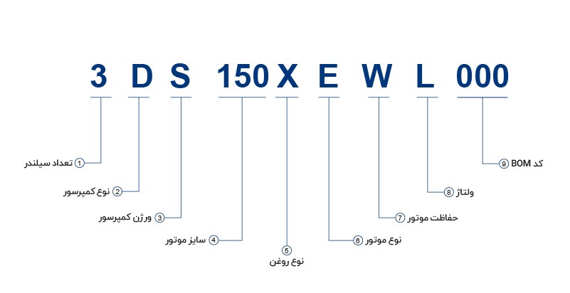 در تصویر زیر نحوه نامگذاری سری دیسکاس کمپرسور پیستونی کوپلند را ذکر کردهایم.