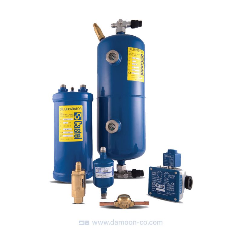 جلوگیری از استهلاک اجزای کمپرسور و بهرهوری هر چه بیشتر کل سیستم سرمایشی بدون استفاده از روغن ممکن نیست. اما همیشه این خطر وجود دارد که روغن همراه با مبرد از کمپرسور خارج شود و کار سیستم را مختل کند. اویل سپراتور کستل یا همان جداکننده روغن تجهیزی است که این امکان را میدهد تا از فواید بهکارگیری روغن در سیستم سرمایشی بهرهمند شویم اما گرفتار عوارض احتمالی آن نشویم. اگر روغنی همراه با مبرد از کمپرسور خارج شود، اویل سپراتور آن را به اویل رسیور یا مستقیماً به خود کمپرسور بازمیگرداند و اجازه نمیدهد تا روغن به کندانسور برسد. کستل یک برند ایتالیایی معتبر است که انواع اویل سپراتور را تولید و در سرتاسر جهان عرضه میکند. شرکت مهندسی دامون، مدلهای مختلف اویل سپراتور castel با اتصال جوشی و در سایزهای ۱٫۲ تا ۱٫۸ ۲ با ضمانت اصالت کالا عرضه میشوند.
