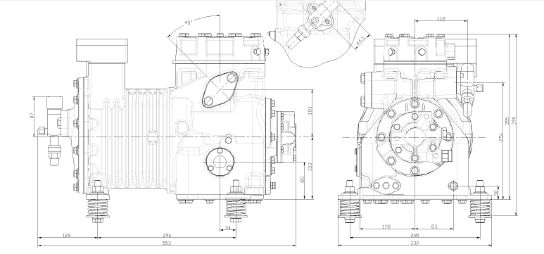 کمپرسور پیستونی کوپلند 2SC-550 تولید کشور چک و ساخت شرکت کوپلند است. این مدل کمپرسور از نوع استاندارد و محدودهی دمایی زیر صفری و گسترهی دمایی آن 40- تا 5- درجه سانتیگراد است. این کمپرسور ساخت کشور چک است و با گاز R22 عملکرد دارد و روغن آن از نوع مینرال است. این کمپرسور در سردخانهها با دمای متوسط و پایین کارآمد است. به دلیل کارکرد زیر صفری، از موارد استفادهی این کمپرسور میتوان سردخانه بستنی را نام برد.