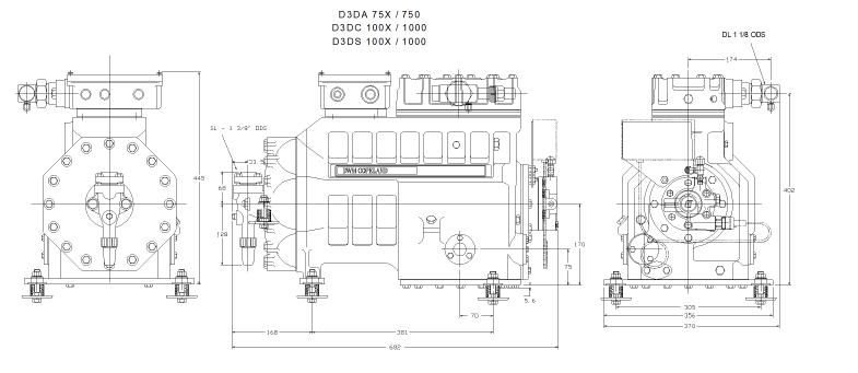 کوپلند یکی از زیر مجموعههای شرکت امرسان است و شرکت امرسان محصولات خود را در کشورهای مختلفی تولید میکند. مدل فعلی ساخت کشور چک است و دارای مشخصات فنی یکسان با مدل قدیمی است. کمپرسور پیستونی کوپلند 3DA-750 جایگزین D3DA-750 است. کمپرسور D3DA-750 مدل قدیمی همین کمپرسور کوپلند است که تحت عنوان کمپرسور DWM در کشور آلمان تولید میشد. این کمپرسور از نظر توان اسمی و بازه کارکرد دمایی، معادل کمپرسور 4CES-9 بیتزر محسوب میشود.