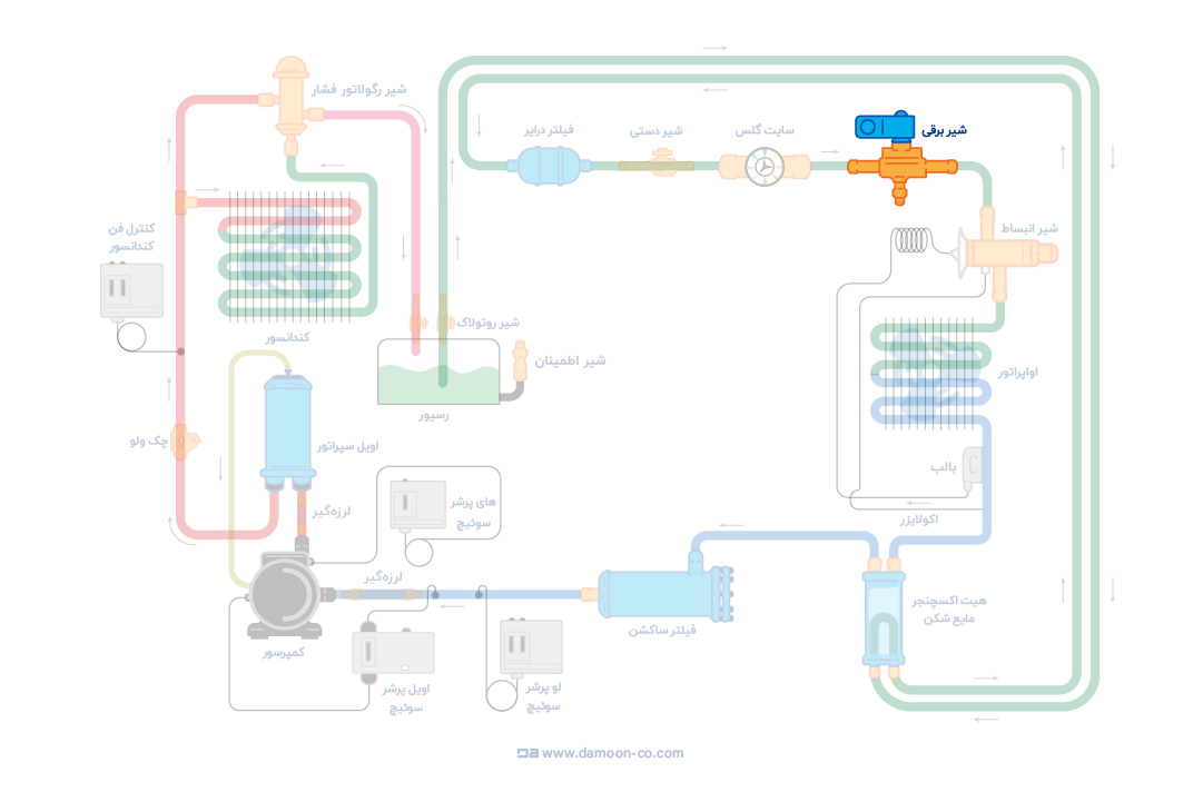 بوبین شیر برقی دانفوس 12 ولت بر روی شیر برقی قابل نصب است.