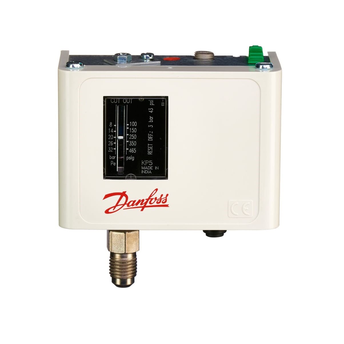 پرشر سوئیج kp5 دانفوس، یک تجهیز حفاظتی است به هنگام افزایش بیش از حد فشار در لوله خروجی کمپرسور به سیستم کنترلی هشدار داده و موتور را خاموش تا از تغییرات غیر مجاز فشار جلوگیری کند. در واقع پرشرسوئيچ را میتوان برای روشن و خاموش کردن اتوماتیک کمپرسور به کار گرفت. پرشر سوئیچ kp5 دانفوس به دلیل سرعت پاسخگویی و دوام بالا میتواند سیستم را از خطرات افزایش فشار در امان نگه دارد. این تجهیز برای سیستمهای برودتی و تهویه مطبوع کاربرد دارد.
