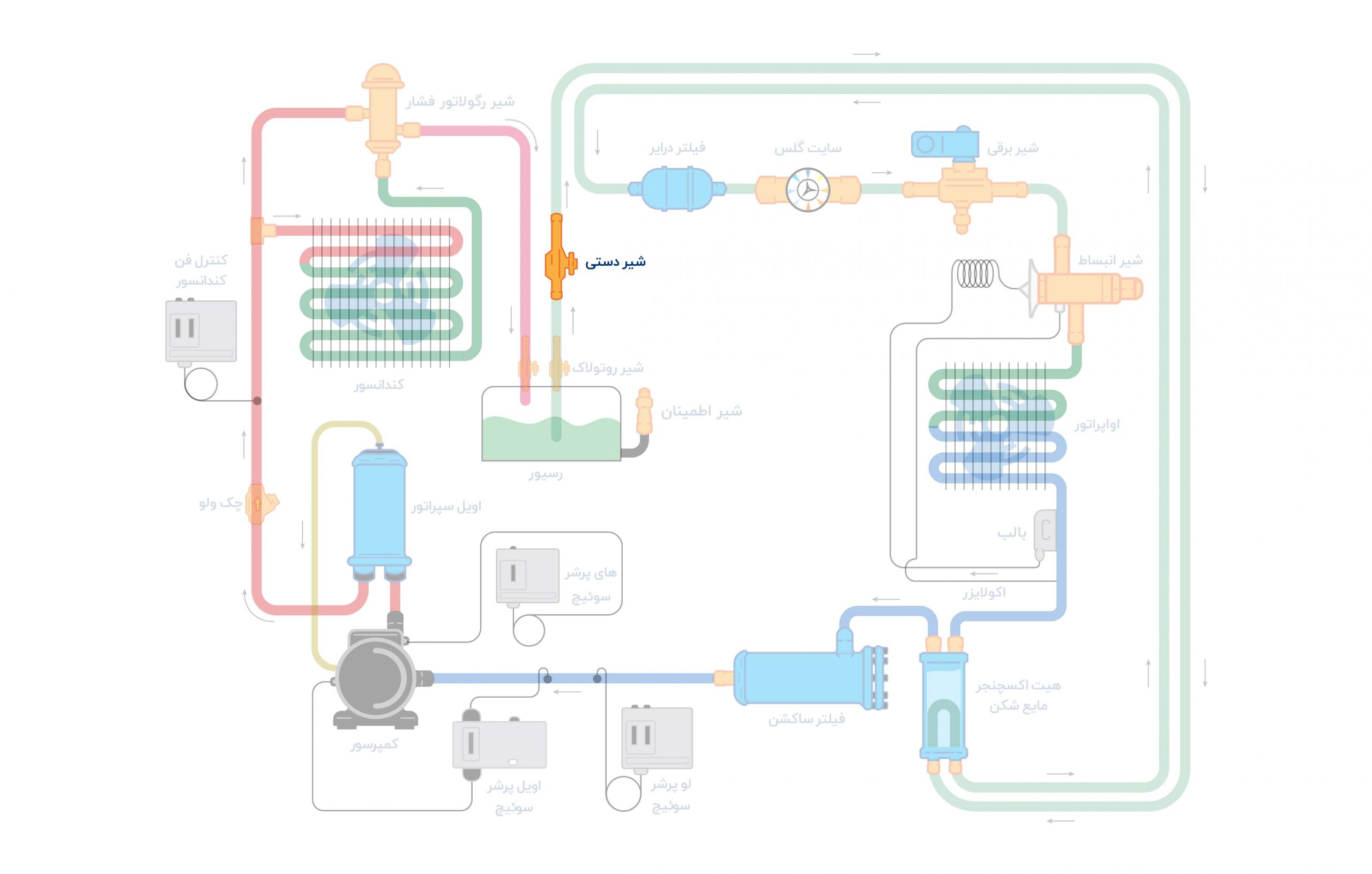 محل نصب شیر دستی در سیکل تبرید