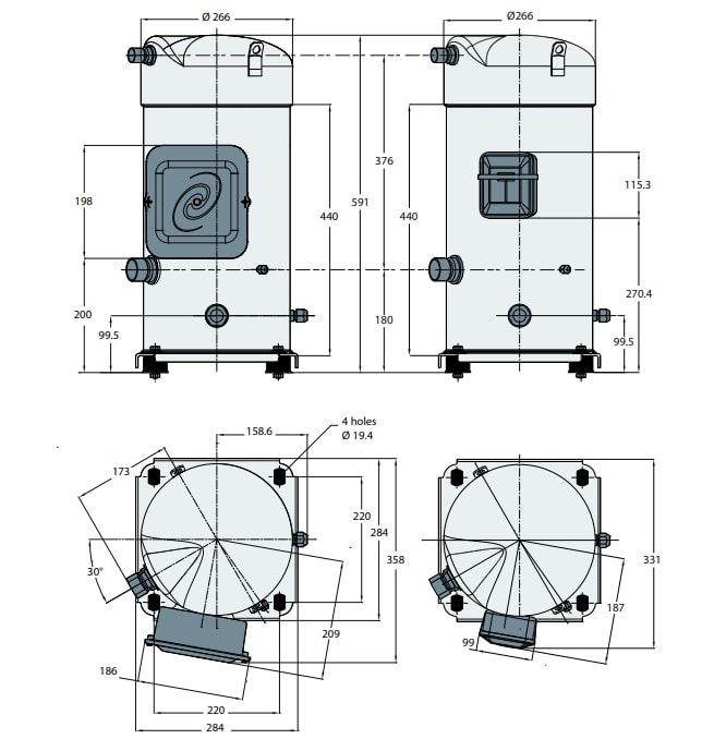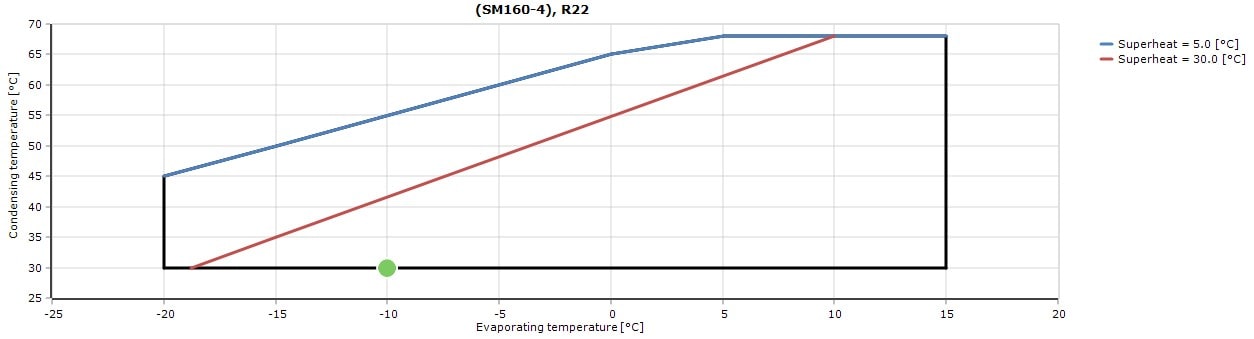 محدودهی دمایی کارکرد کمپرسور SM160 بازهی 20- تا 15+ درجه سانتیگراد است و حجم جابهجایی آن 37.7 متر مکعب بر ساعت. شرکت دانفوس دانمارک محصولات خود را در کشورهای متفاوتی از جمله چین تولید میکند و کمپرسور دانفوس SM160 ساخت کشور چین است. این کمپرسور دانفوس با گاز مبرد R22 و 4 لیتر روغن معدنی 160P کارایی دارد. برای اطلاع از نحوهی نامگذاری کمپرسورهای اسکرال دانفوس که به مواردی نظیر نحوهی اتصال جوشی یا روتولاک و یا ولتاژ ماژول اشاره میکند میتوانید مقالهی نحوهی نامگذاری کمپرسور اسکرال دانفوس را مطالعه کنید.